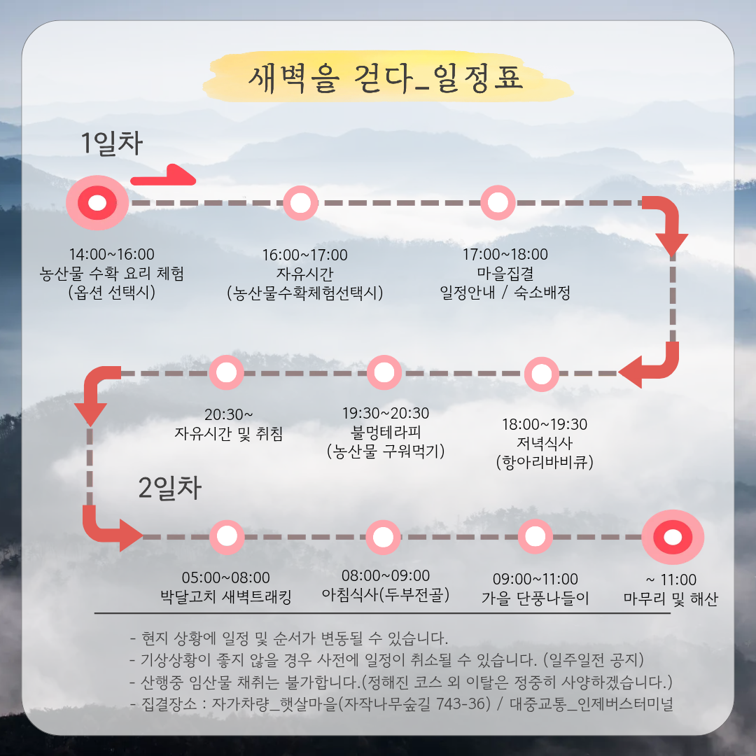 * 날씨나 현지상황으로 일정이 변경될 수 있습니다.