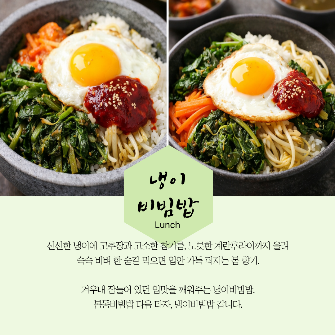 봄동비빔밥 다음 타자는 냉이비빔밥