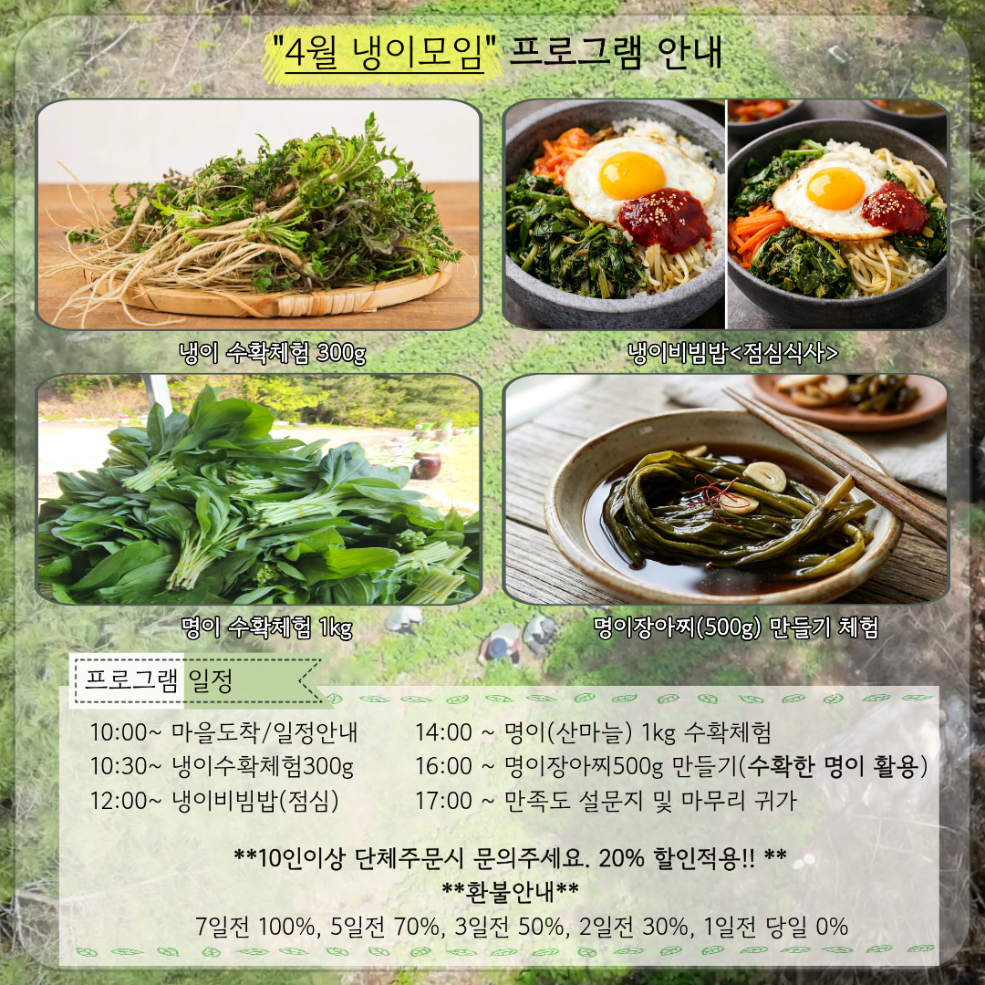 🌱 26년 인제군 체험지원상품 <4월 냉이모임> 당일