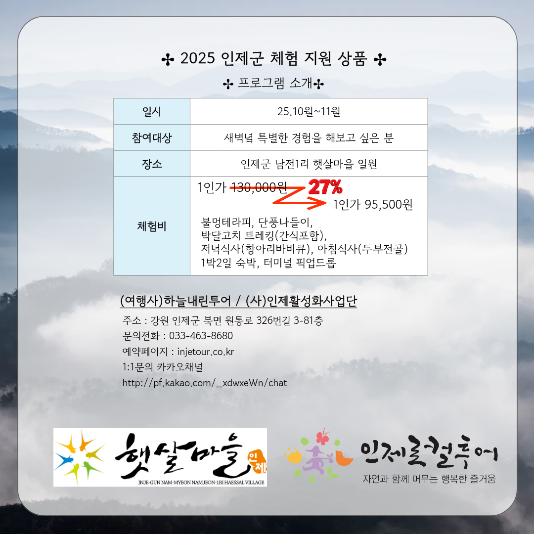🍂✨ 25년 인제군 체험지원 상품 <새벽을 걷다> ✨🍂