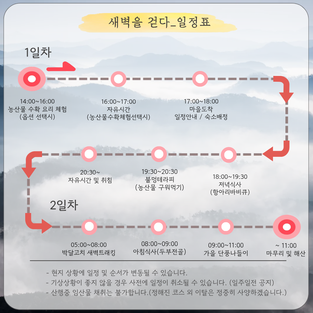 * 날씨나 현지상황으로 일정이 변경될 수 있습니다.
