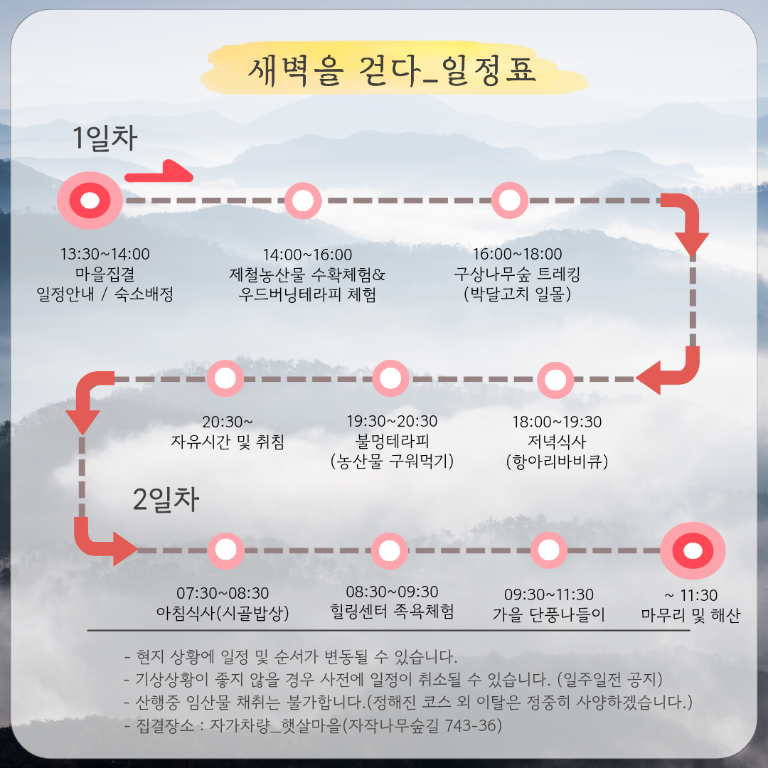 * 날씨나 현지상황으로 일정이 변경될 수 있습니다.