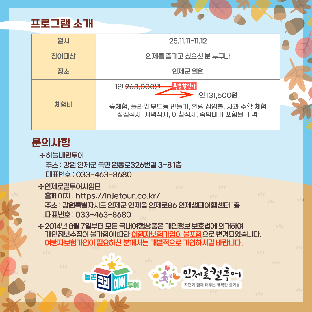 25년 인제군 농촌 크리에이투어 상품